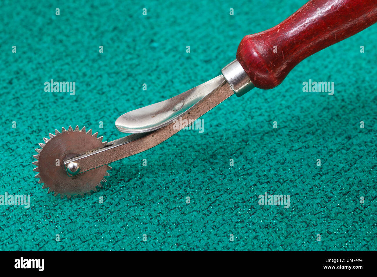 Sewing Tracing Wheel On Green Textile Close Up Stock Photo Alamy